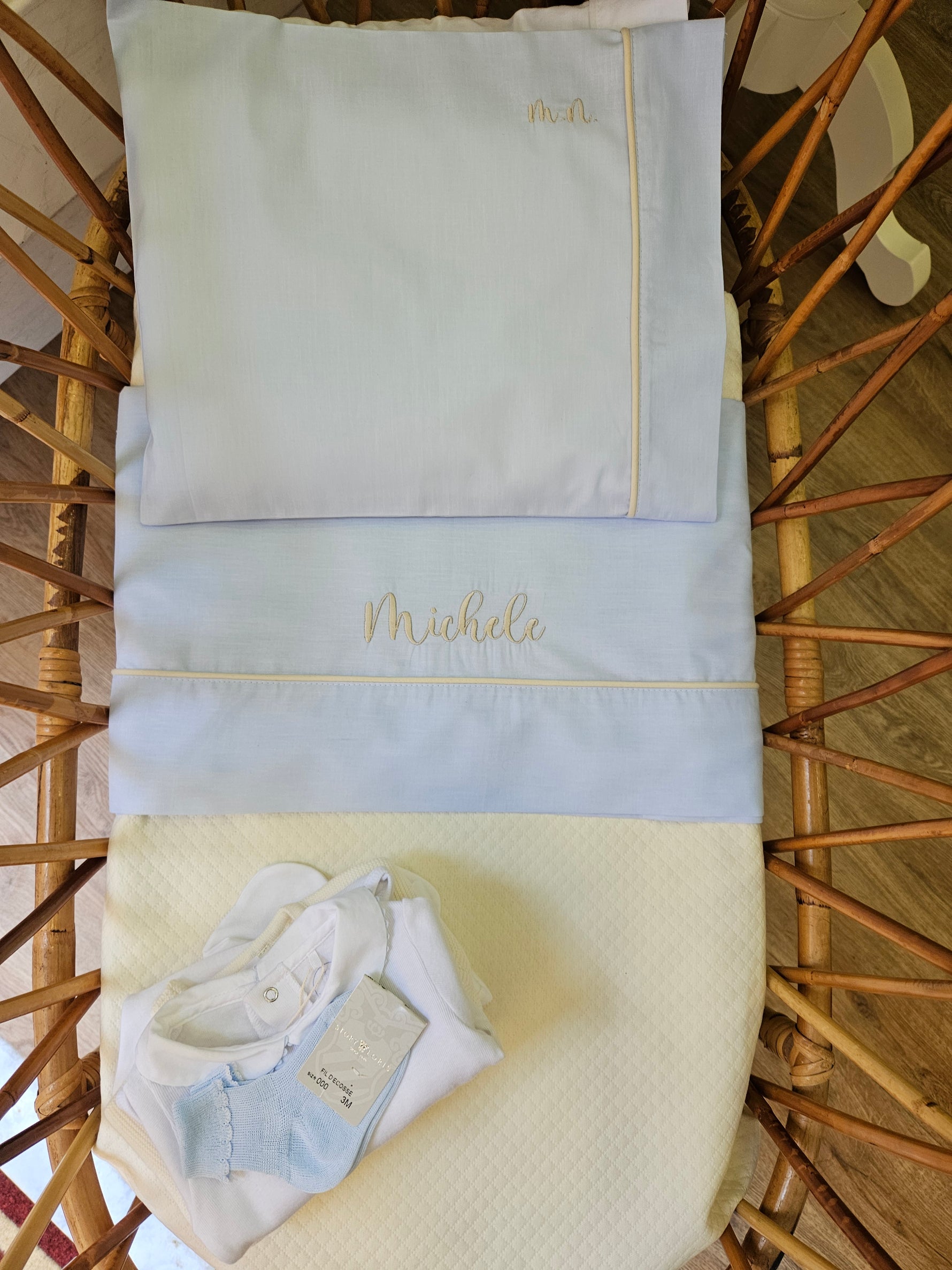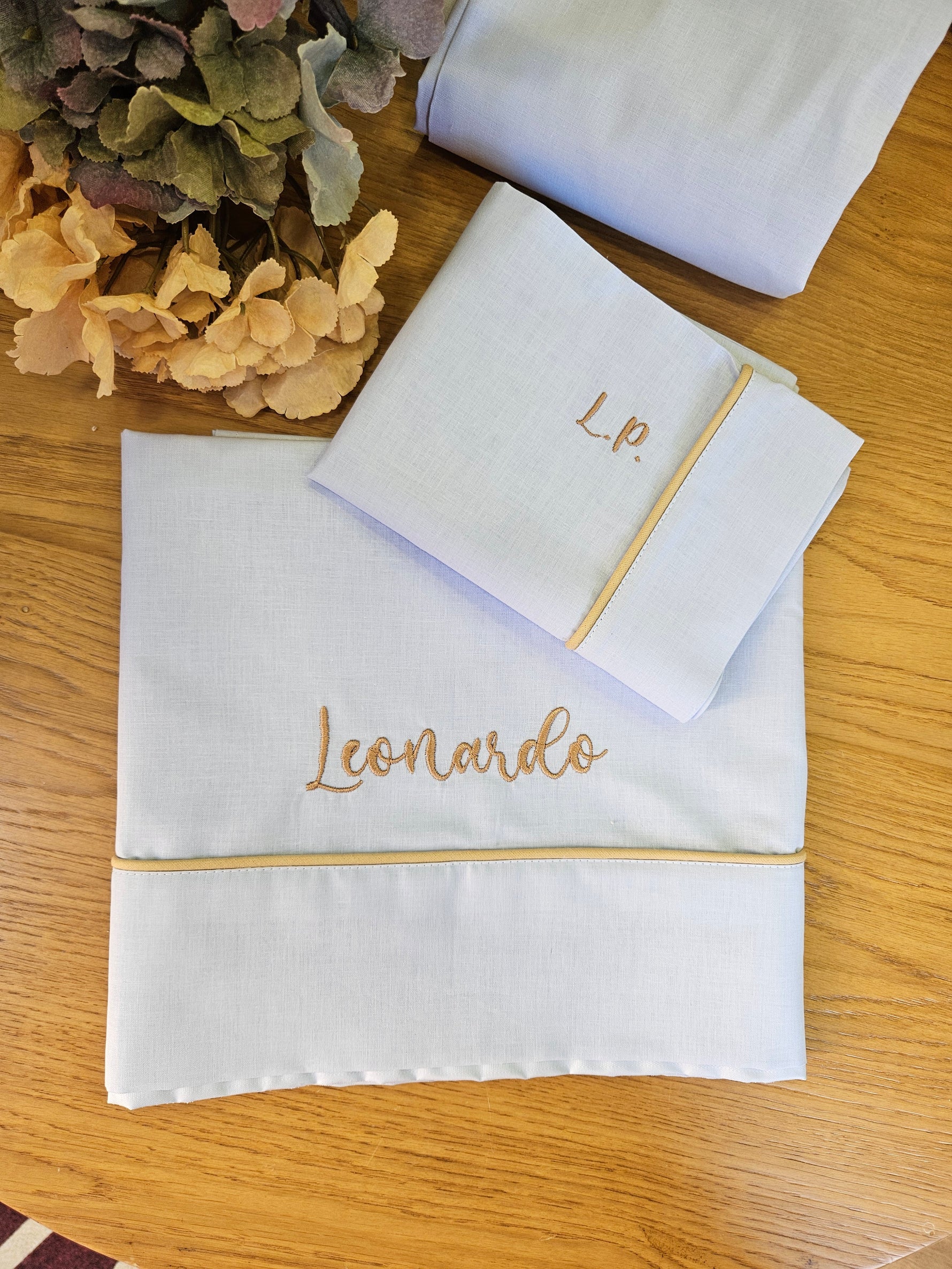 Lenzuolino personalizzato con federa cuscino coordinato.