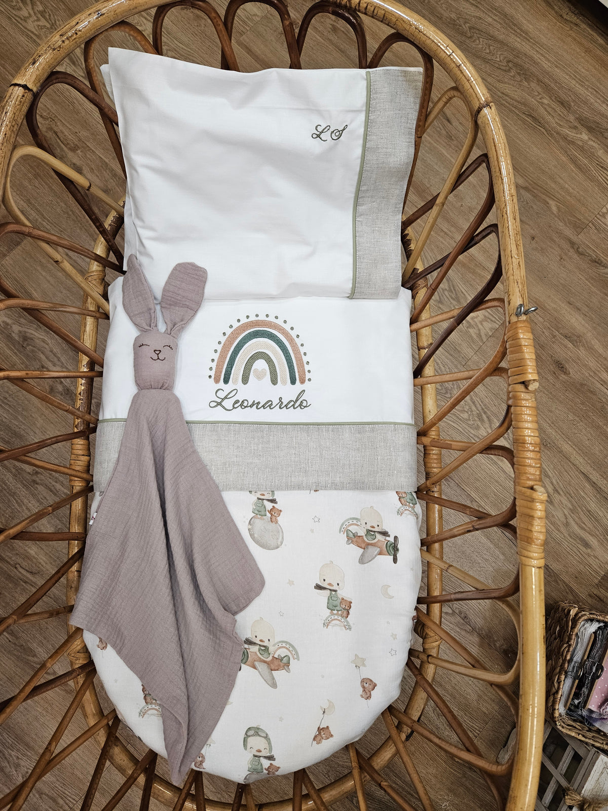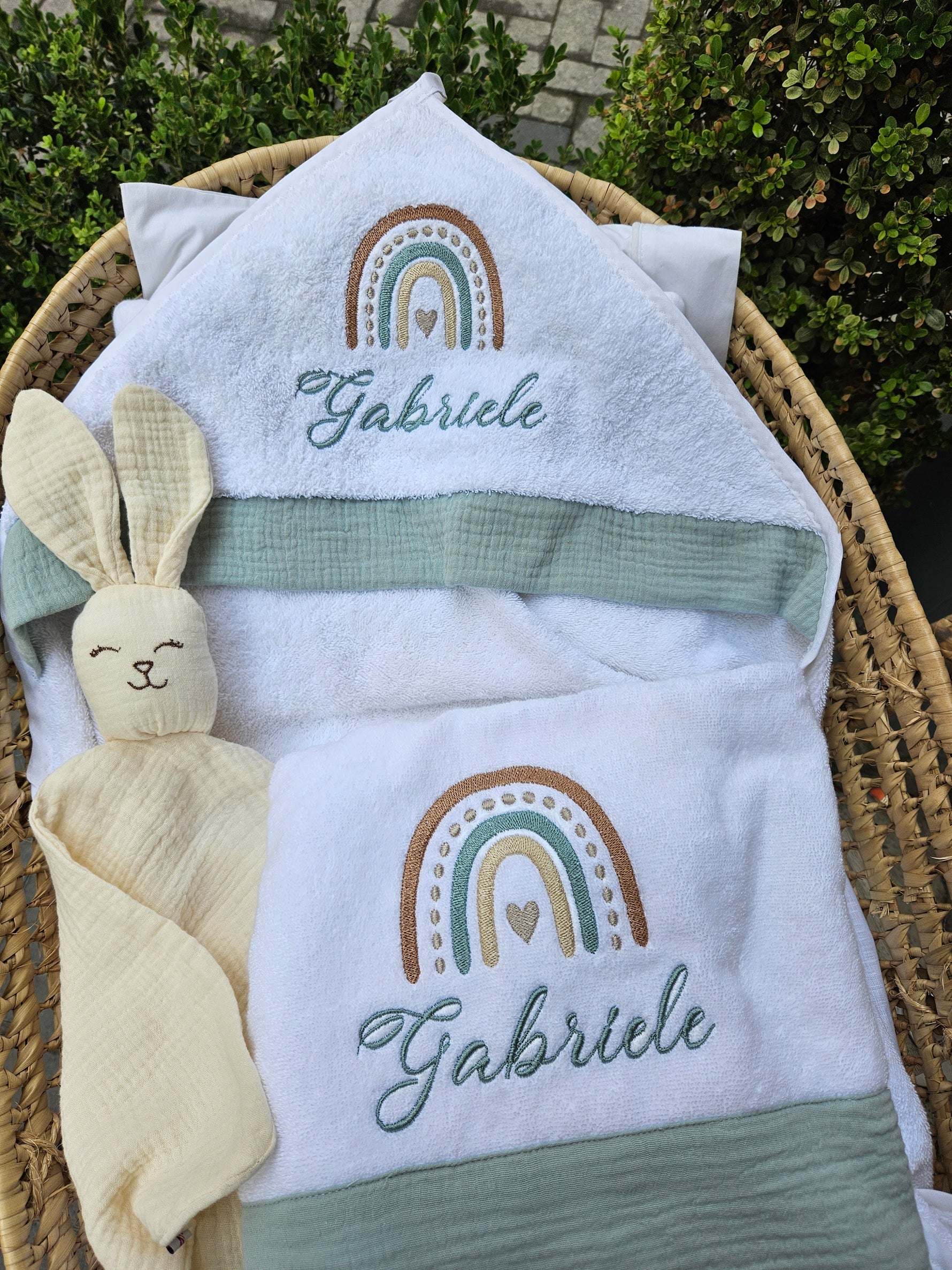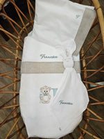 Scegli il colore della mussola che preferisci e rendilo unico con il ricamo dell'iniziale o del nome del/la bimbo/a.