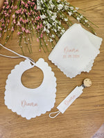 Bavaglino e fazzoletto battesimale con smerlo e portaciuccio
