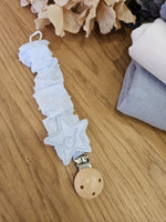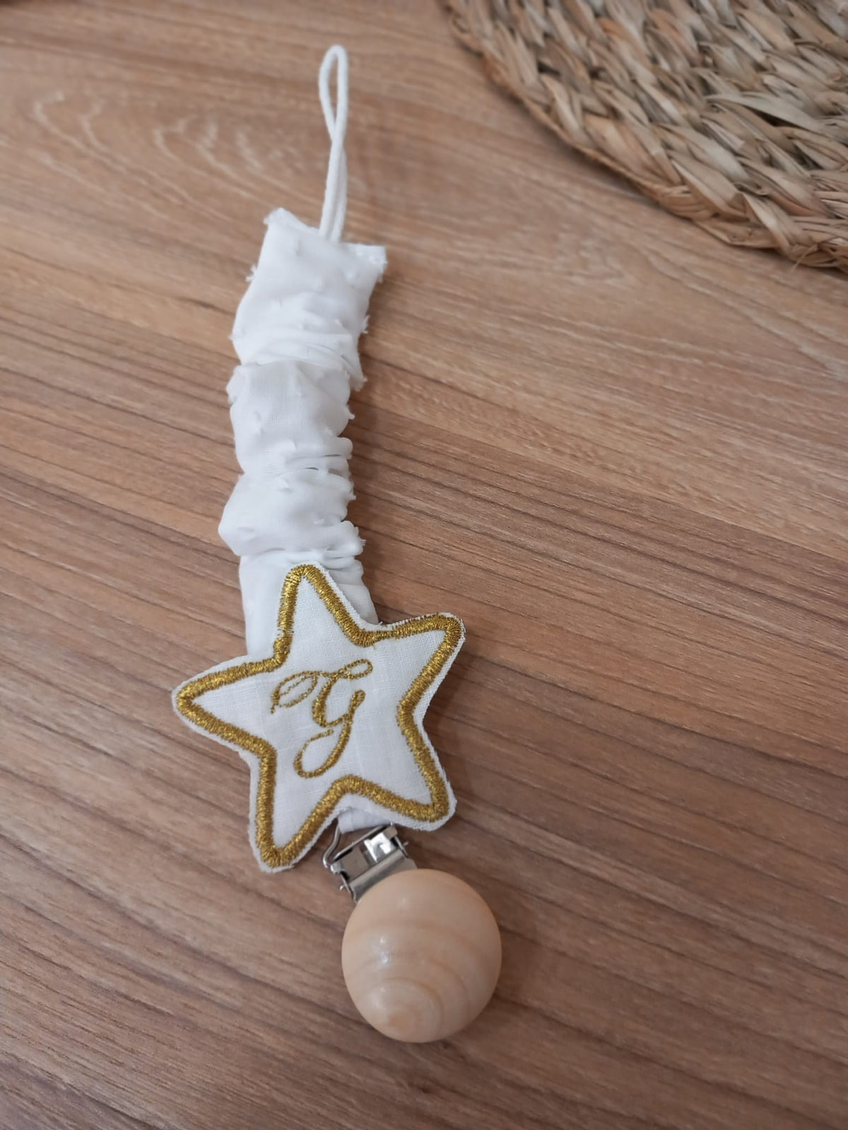 Rendi unico il portaciuccio con una dolce stellina con l’iniziale del tuo bambino: un dettaglio speciale che lo rende perfetto anche come idea regalo nascita.
