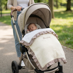 Grazie alla sua particolare morbidezza e alla straordinaria capacità di trattenere il calore, è ideale per avvolgere completamente il neonato durante le passeggiate in carrozzina o per i momenti di riposo.