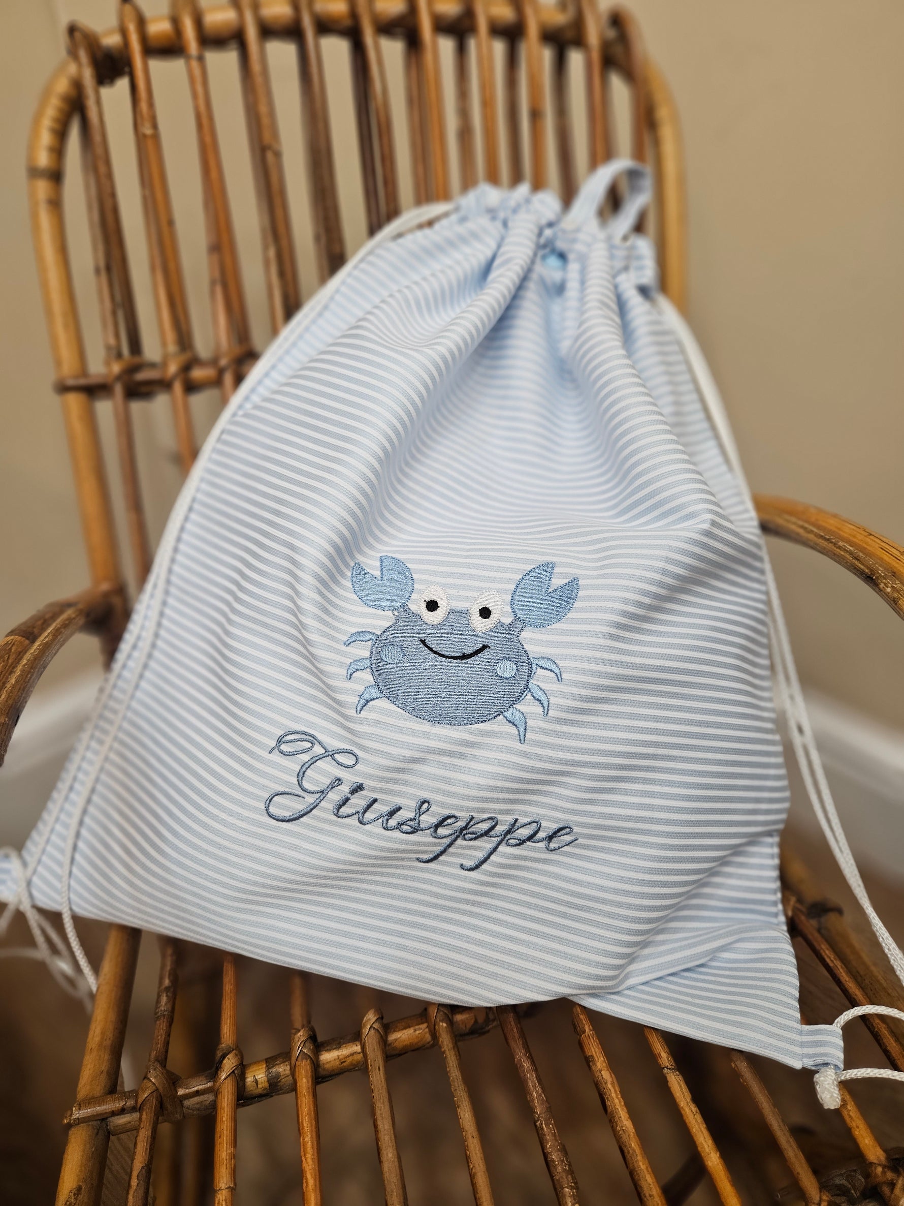 La presenza di un gancio la rende ancora più funzionale: puoi appenderla facilmente dove serve, sempre a portata di mano. Il punto forte? È completamente personalizzabile! Scegli il tessuto e il ricamo che preferisci e rendi unica la tua sacca.