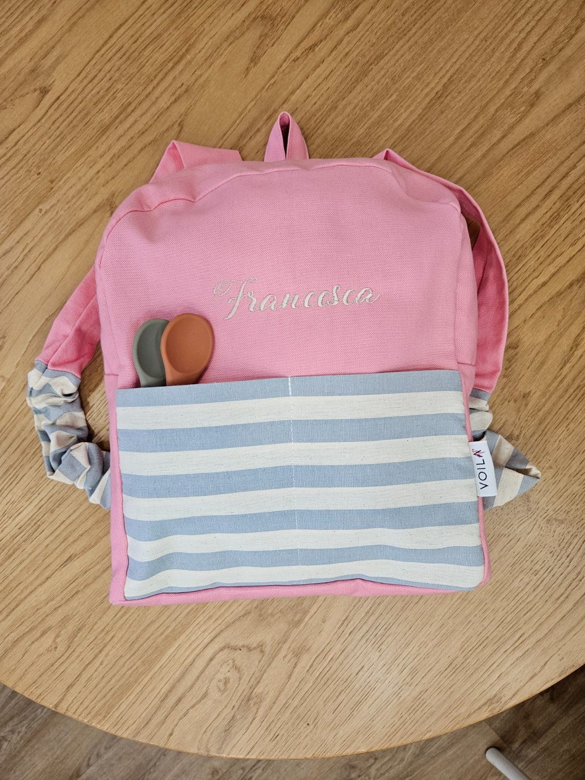 Un cambio, i suoi giochini preferiti e la merenda: tutto trova posto in un unico zainetto, semplice da trasportare e bello da vedere.