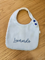 Bavaglino in cotone e spugna con chiusura a clip. Misura 18 x h 26 cm.