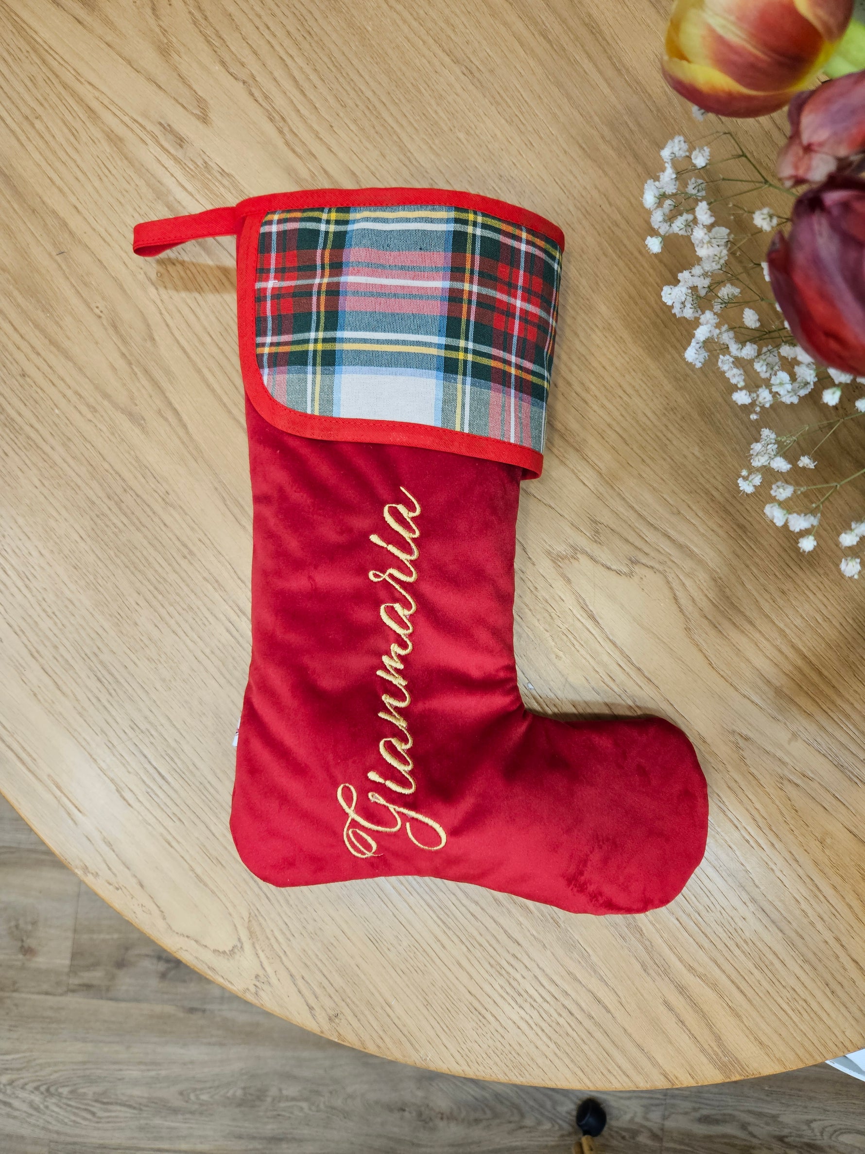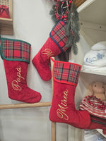 Calza di Natale in velluto e tartan con nome