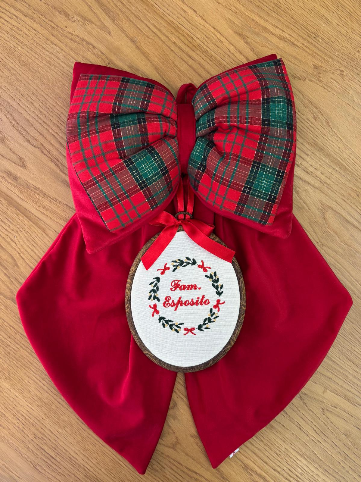 Realizzato in velluto rosso e tartan, questo doppio fiocco (misura 32 x 52 cm) è il dettaglio perfetto per decorare con stile porte, credenze o angoli speciali della casa. ✨ Personalizzazioni disponibili: