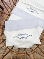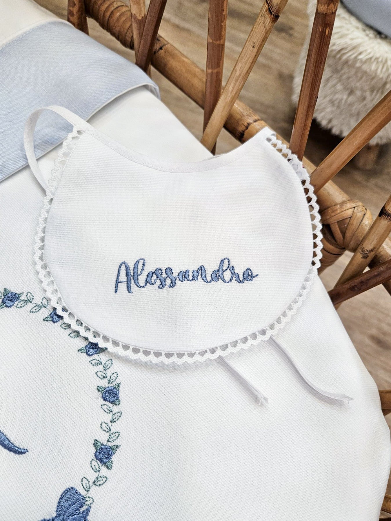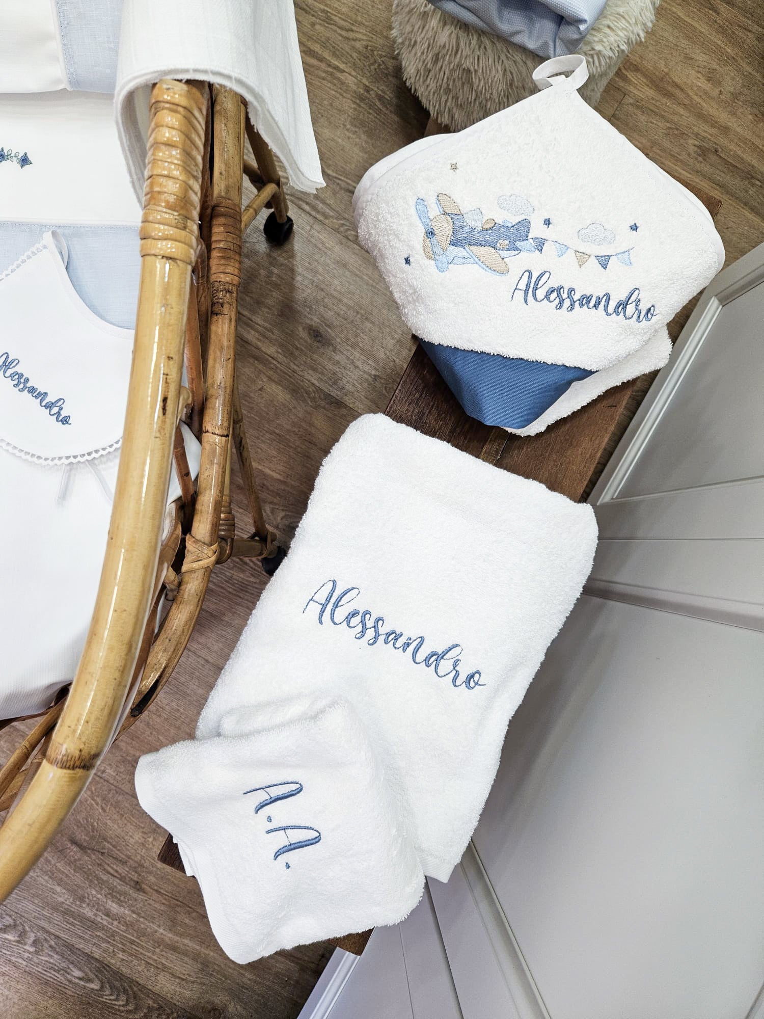 Il corredo è personalizzabile ed è disponibile in due varianti di ricamo.