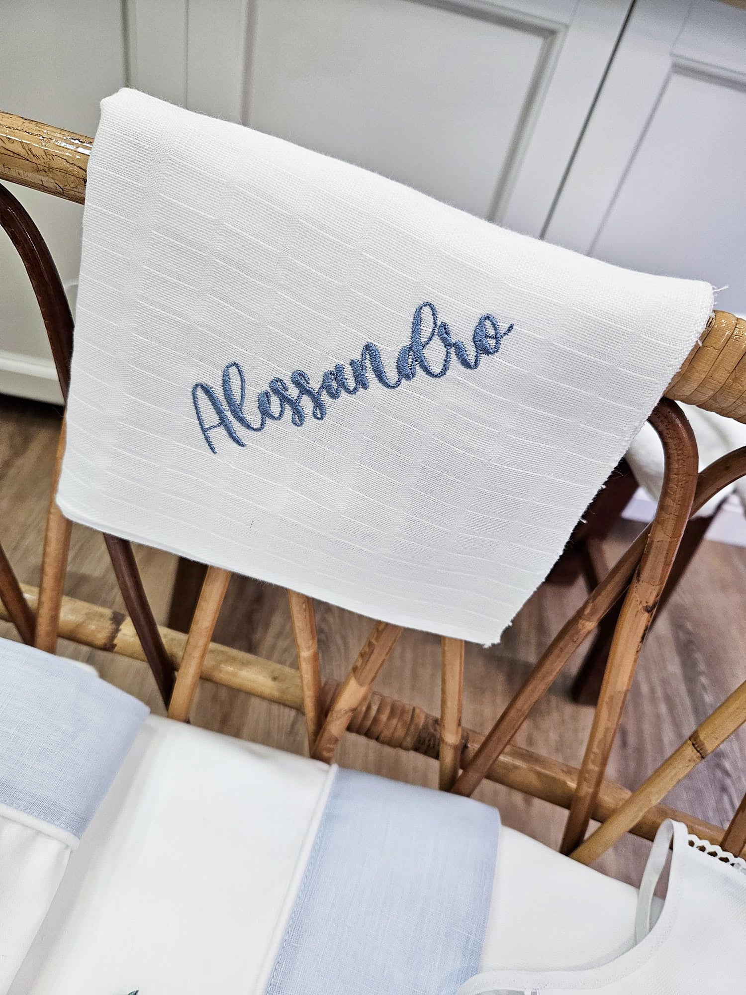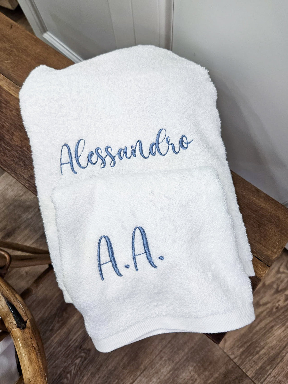 Per i prodotti che prevedono ricamo, è possibile scegliere fra diversi font e colori. Una volta effettuata la scelta, puoi visualizzare un’anteprima del risultato per verificare che soddisfi le tue preferenze. Se hai richieste particolari, contattaci e cercheremo di aiutarti.