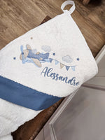 Abbiamo creato un corredo nascita completo personalizzato, coordinato in ogni dettaglio e realizzato interamente in cotone 100%, ideale per la pelle delicata del neonato fin dai primi giorni.