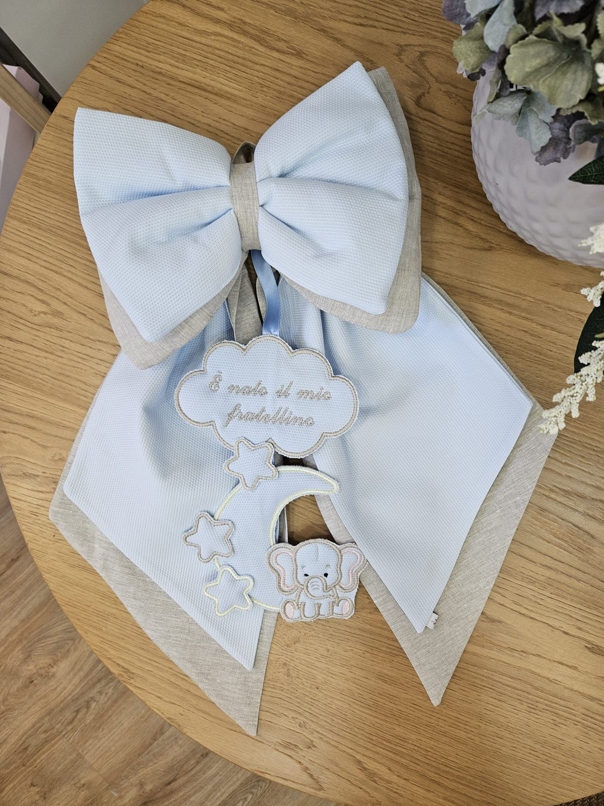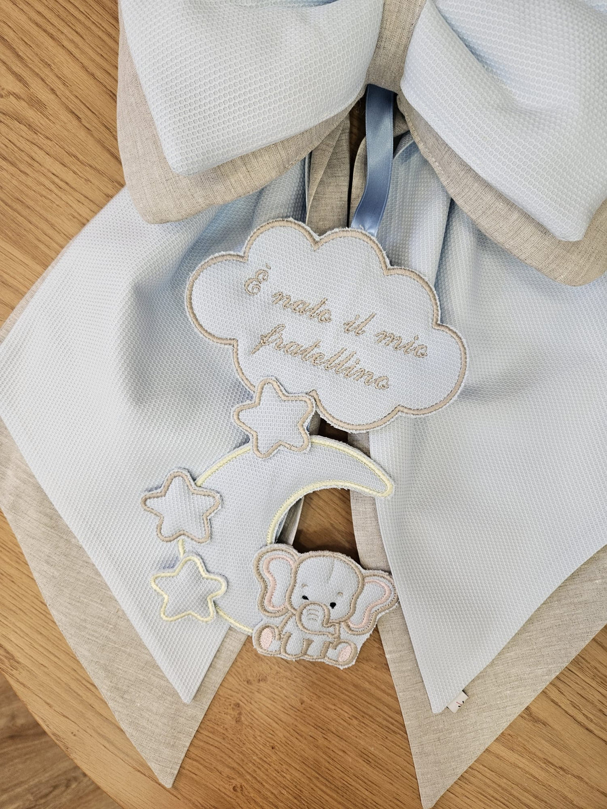 - Una nuvoletta con il ricamo personalizzato, rendendo il fiocco unico e speciale.
