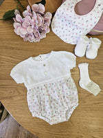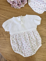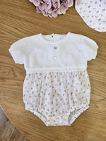 Pagliaccetto neonato in filo e tessuto stampa fiorellini