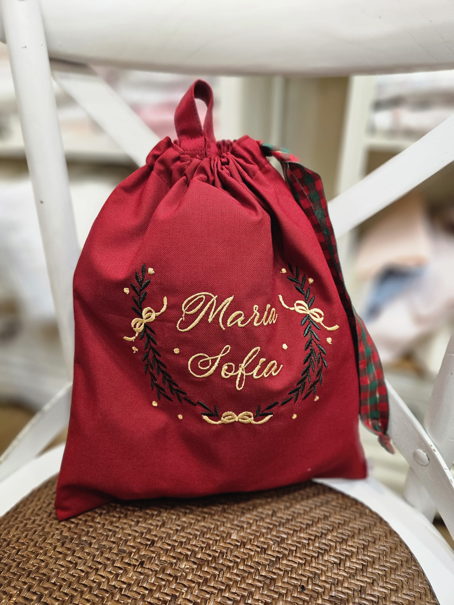 Un’idea originale per il periodo natalizio: la Sacca in Cotone con Ricamo Natalizio è una valida ed elegante alternativa alla tradizionale calza della Befana. Ideale da appendere, riempire di dolci e piccoli regali, o da riutilizzare anche dopo le feste, unisce semplicità e atmosfera natalizia.